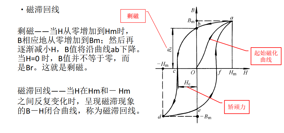 - 磁滞回线较宽,剩磁和矫顽力都大