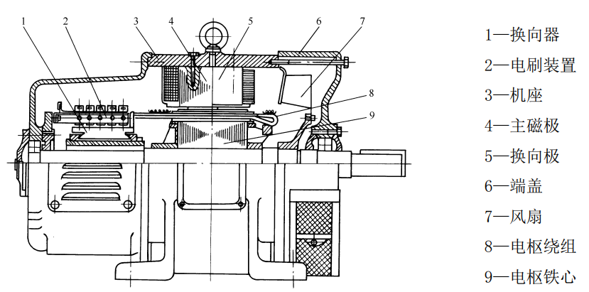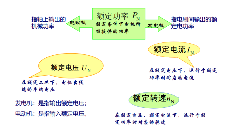 - 功率平衡: 输入电功率 \(P_1\) 被分为铜耗、电刷损耗、铁损、机械损耗和输出功率: