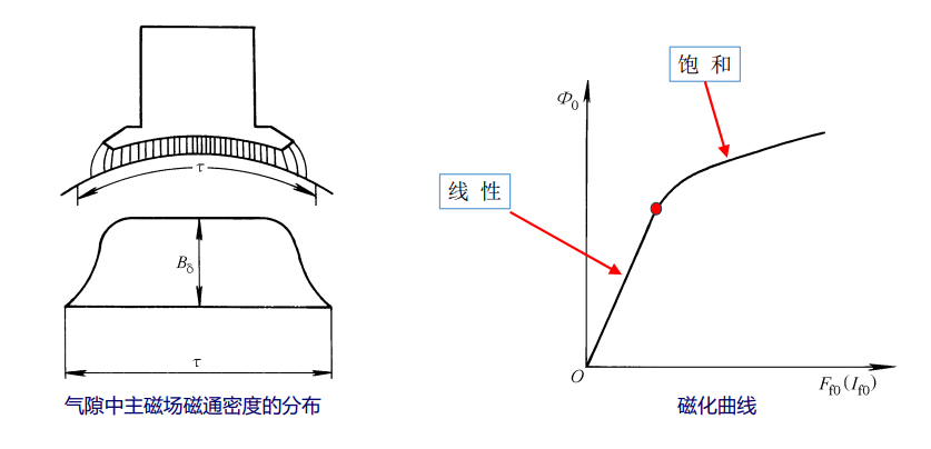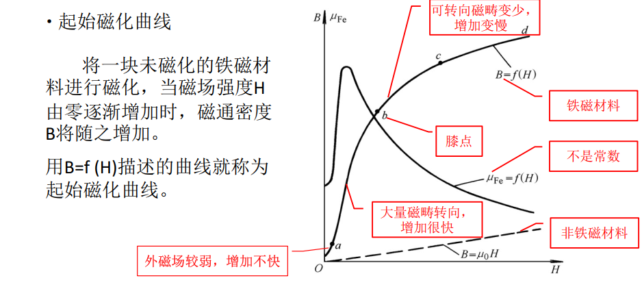 非铁磁材料的磁导率接近于真空的磁导率 \(\mu_0\) ,电机中常用的铁磁材料磁导率 \(\mu_{Fe} = (2000 \thicksim 6000)\mu_0\)