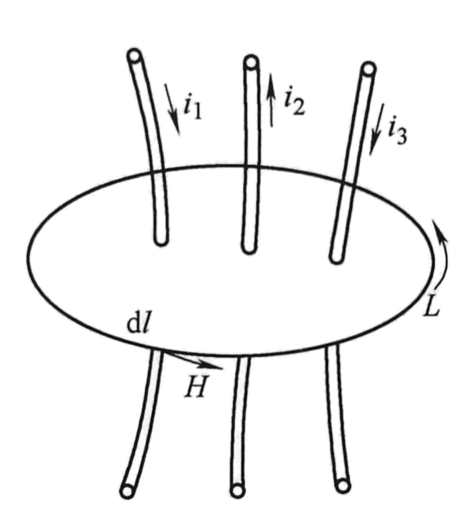 - 沿任何一条闭合回线 \(L\) ,磁场强度 \(H\) 的线积分等于该闭合回线所包围的电流的代数和 \(\oint_{L} Hdl = \sum i\)
