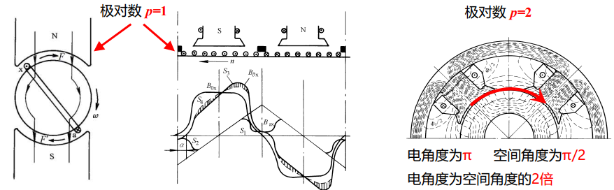 - 当 \(p=2\) 时,电角度为空间角度的2倍。