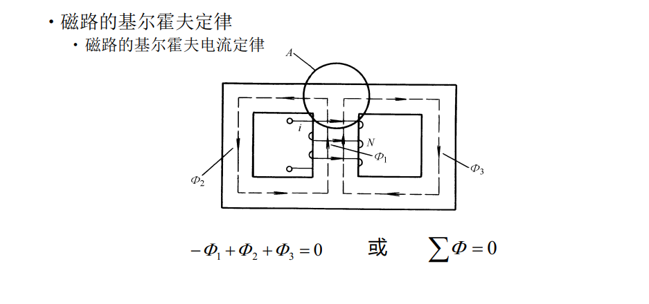 - 磁路的基尔霍夫电流定律:\(\sum \phi\)