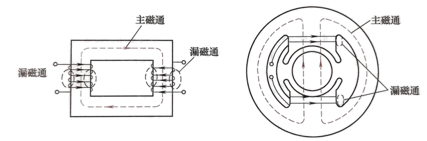 - 电路中的电流全部在导线中流动;而在磁路中,总有一部分漏磁通。